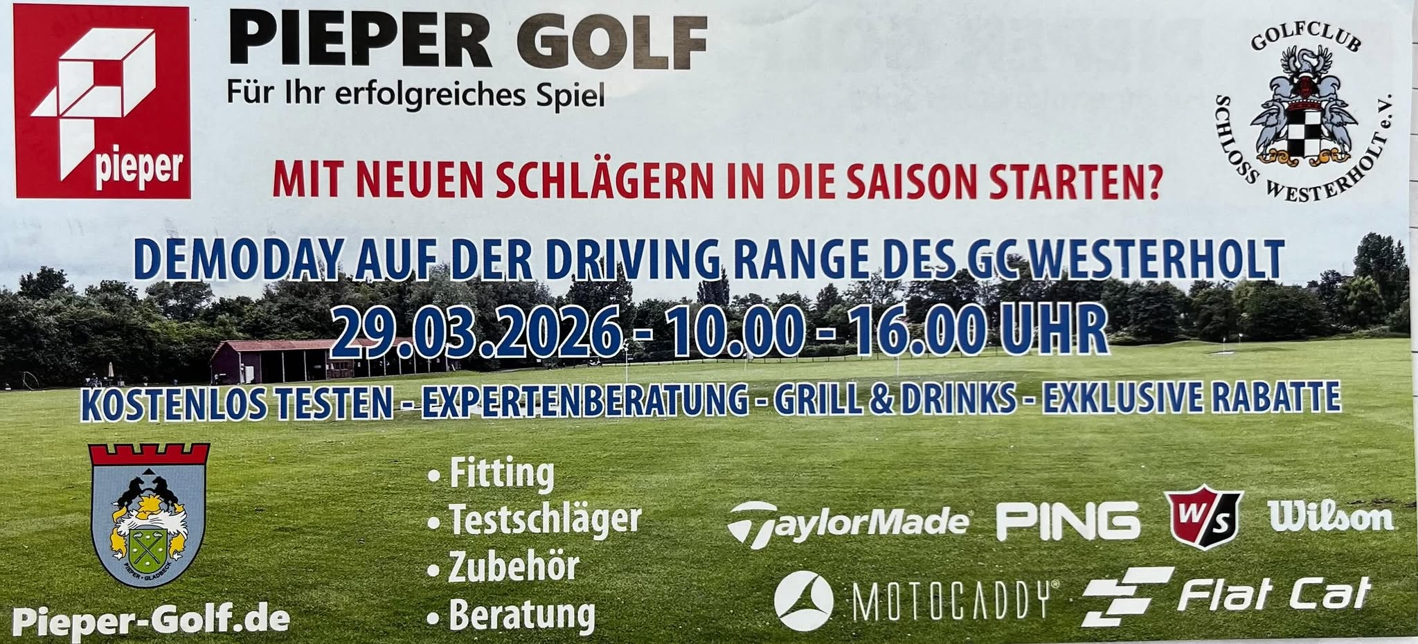 Kommen Sie am 29.03.2026 von 10:00 – 16:00 Uhr auf die Driving Range des Westerholter Golf Club und erleben Sie unsere Demo Days!